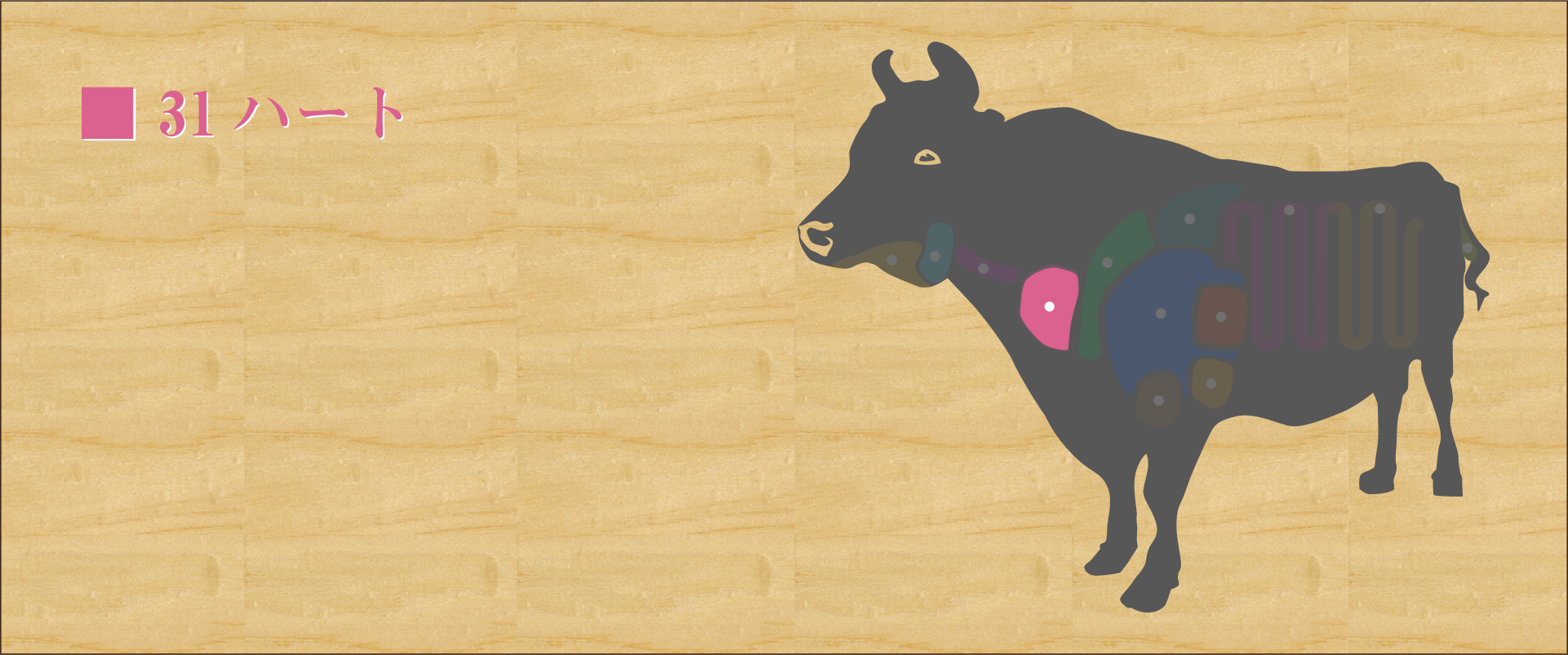 牛の心臓。 ほとんどが筋繊維でとても細かく弾力があり、噛むとさくっとした心地よい食感がある。 見た目はレバーのようだが、臭みもあまりなく脂も少ないためホルモンが苦手な人でも食べやすい部位。 ビタミンB12がとても豊富で貧血予防や神経機能の正常化に効果があり、健康に気を付けている人にはおすすめ。